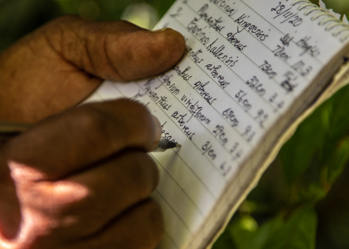 Taking notes on the Pygmy Chameleon in Malawi